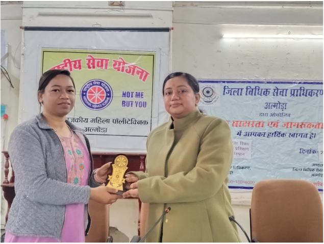 सचिव जिला विधिक सेवा प्राधिकरण अल्मोड़ा शचि शर्मा द्वारा सी सी.आई.एस कम्प्यूटर प्रशिक्षण के बच्चों के मध्य व जिला शिक्षा एवं प्रशिक्षण संस्थान अल्मोड़ा में एन.एस.एस के विद्यार्थियों के मध्य विधिक जागरूकता शिविरो का आयोजन किया गया। शिविरों का आरम्भ नालसा थीम गीत एक मुठ्ठी आसमान चलाकर किया गया। शिविर में उपस्थित व्यक्तियों को नालसा वीर परिवार सहायता योजना 2025, बाल विवाह निषेध,कार्यस्थल पर महिलाओं के यौन उत्पीड़न अधिनियम, 2013, दहेज निषेध अधिनियम, भरण पोषण, संपत्ति एवं उत्तराधिकार अधिकार, निःशुल्क कानूनी सहायता, नालसा संवाद योजना, 2025, सुरक्षा का अधिकार, नालसा हेल्पलाइन नंबर 15100, 2 जनवरी से जनपद में चल रहे 90 दिवसीय मध्यस्थता अभियान, स्थाई लोक अदालत आदि के विषय में जागरूक किया गया एवं पंपलेट वितरित किए गये।शिविरो में अधिकार मित्र उपस्थित रहें।